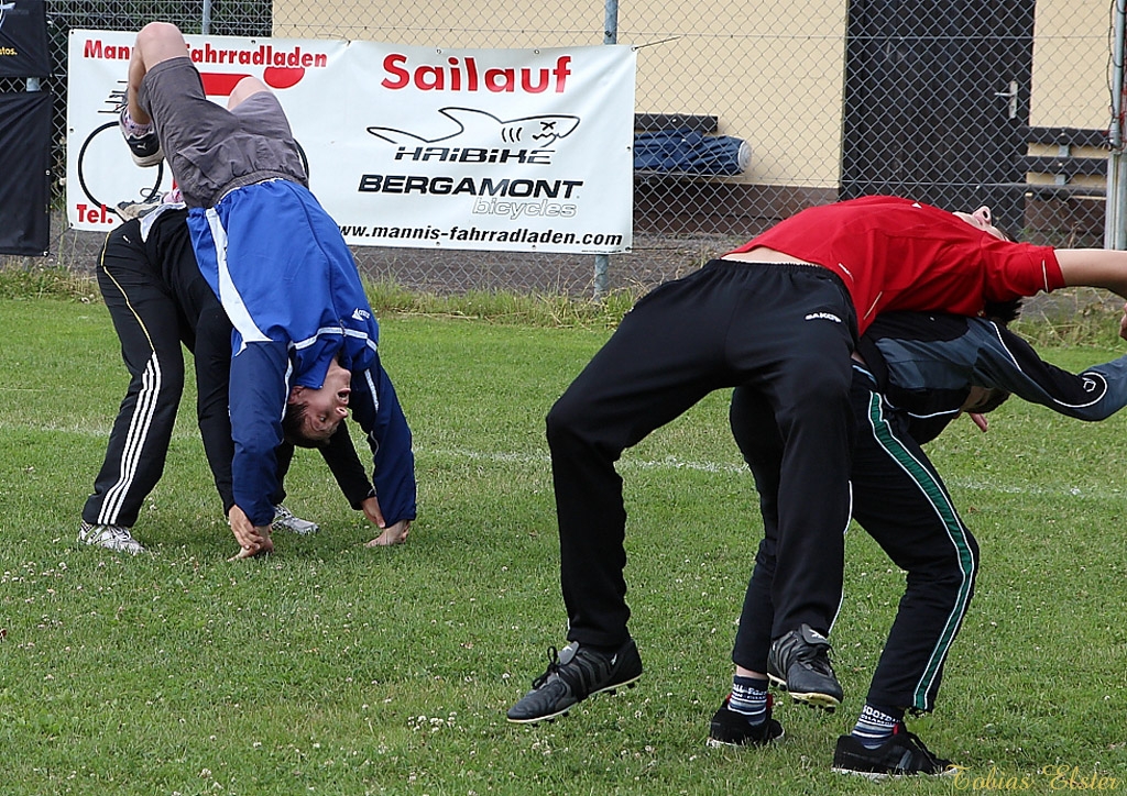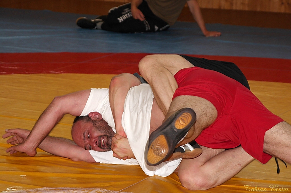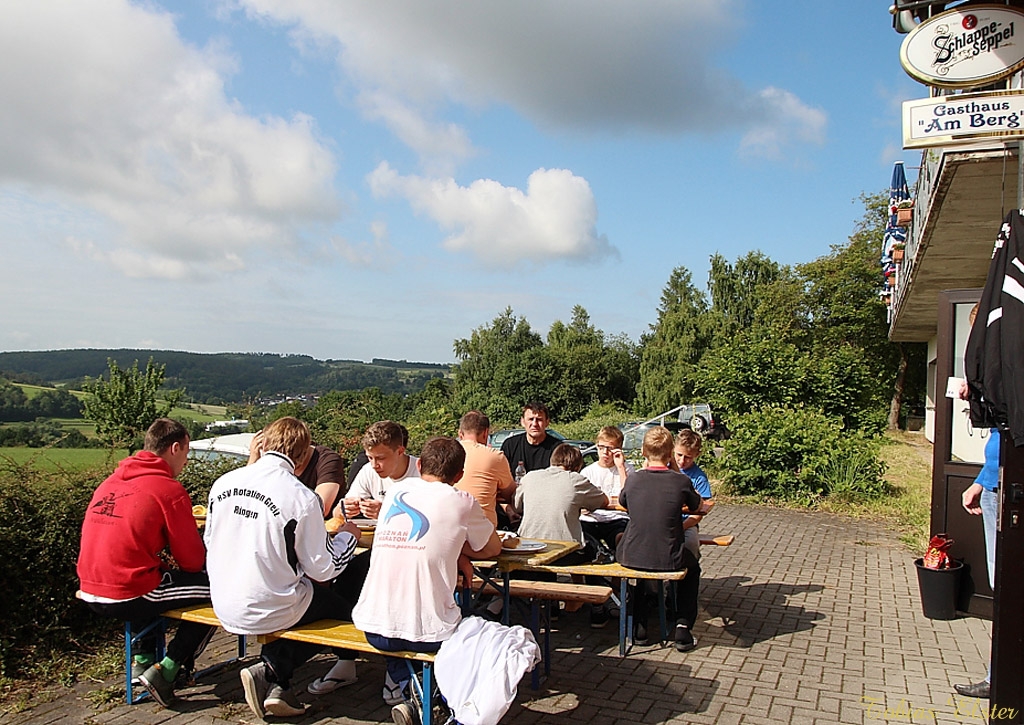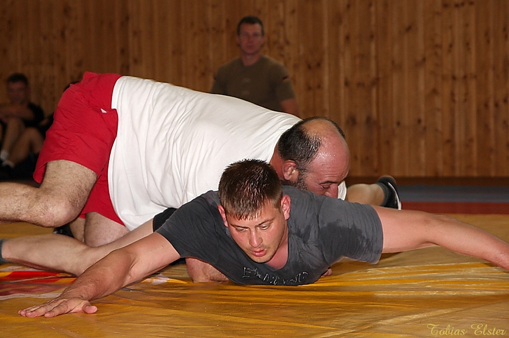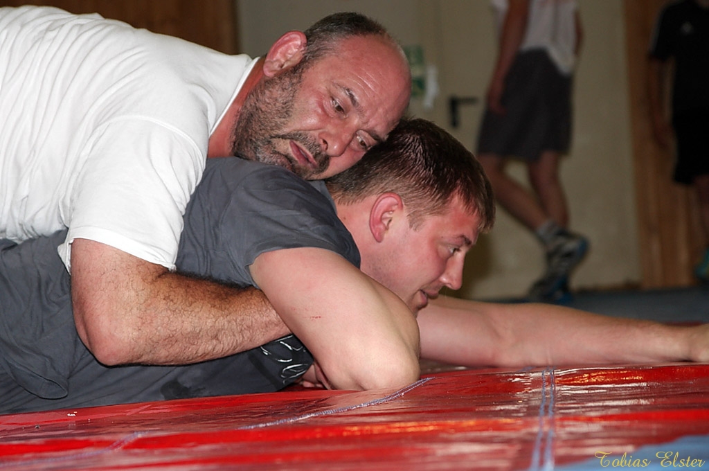 MÖMBRIS. Am ersten Juli-Wochenende fand in der bayerischen Ringerhochburg Mömbris-Königshofen die Kirmes statt. Der Vizepräsident des RSV Rotation Greiz, Tino Hempel, der in der neuen Saison auch wieder als Trainer für die erste Mannschaft verantwortlich zeichnen wird, hatte seine Beziehungen aus seiner Zeit als Aktiver und Trainer im Aschaffenburger Raum ausgespielt und dort ein dreitägiges Trainingslager organisiert. Am Freitag, den 28. Juni, fand ein Freundschaftskampf zwischen der RWG Mömbris-Königshofen und dem RSV Rotation Greiz statt. Der Erstligist aus dem Spessart stand zwar im Halbfinale der deutschen Mannschaftsmeisterschaft, stellte aber mehrere Sportler zum Großen Preis nach Dortmund ab, so dass ein interessanter Vergleich entstand. Zum Schluss siegte der RSV Rotation Greiz. Am Wochenende standen dann gemeinsame Trainingseinheiten auf dem Programm. Neben den Zweitligaringern nahmen auch Nachwuchsringer die Fahrt nach Mömbris in Angriff.