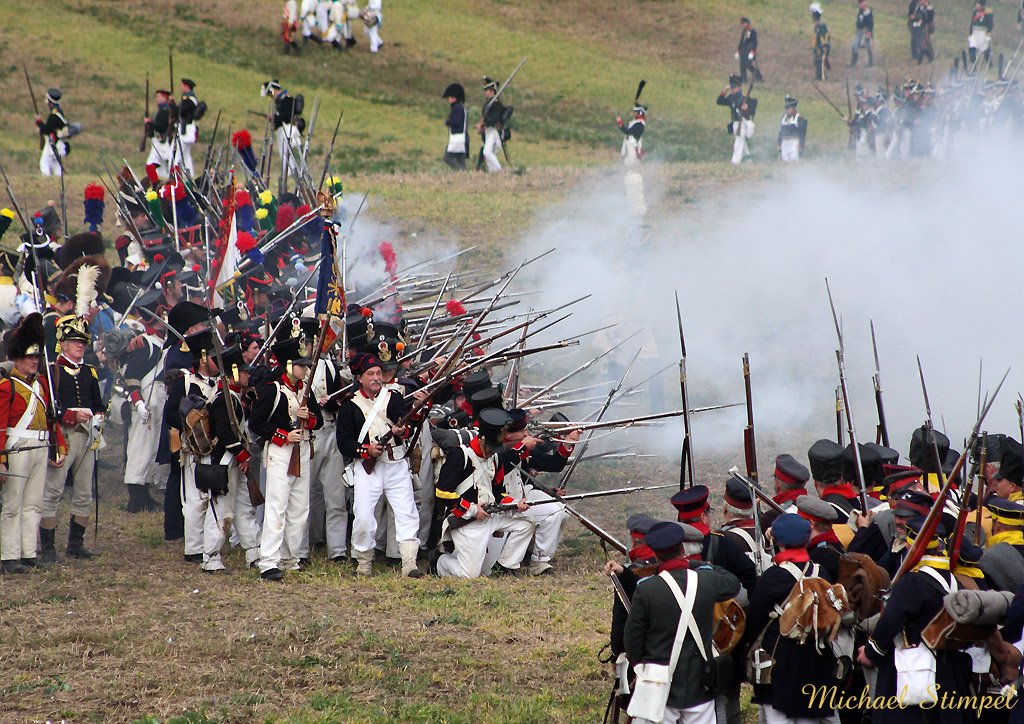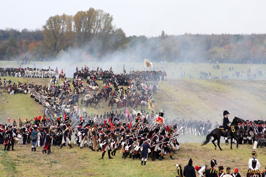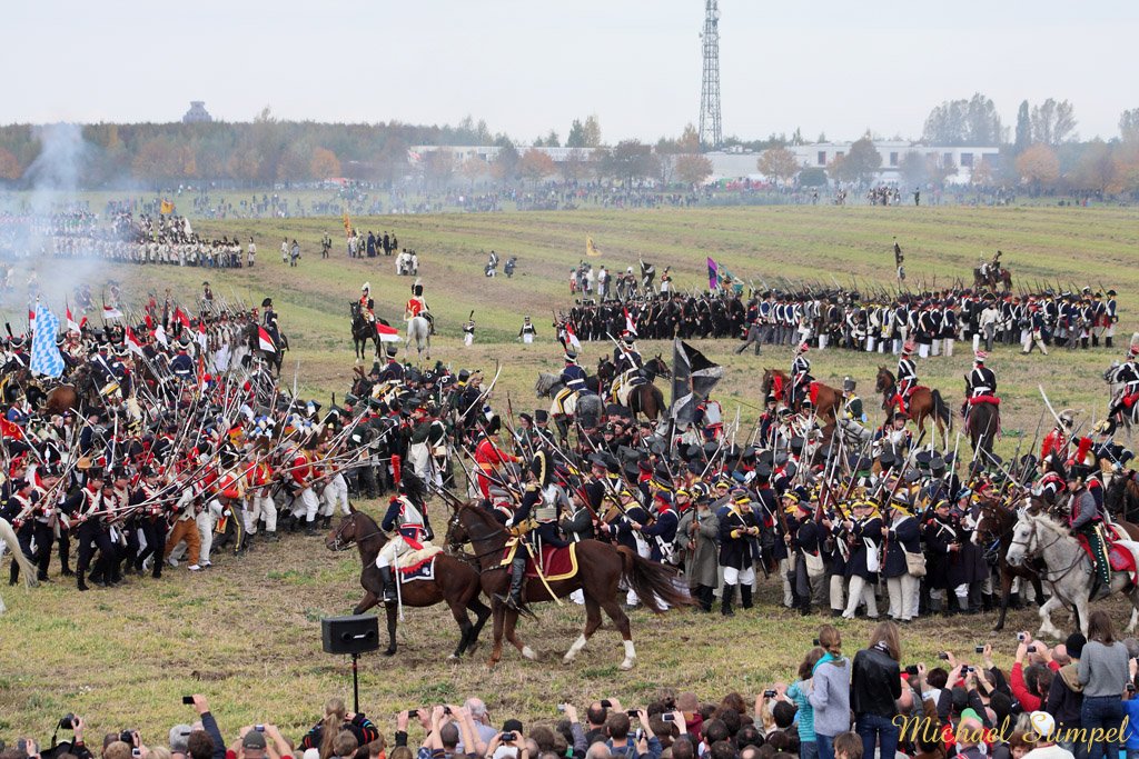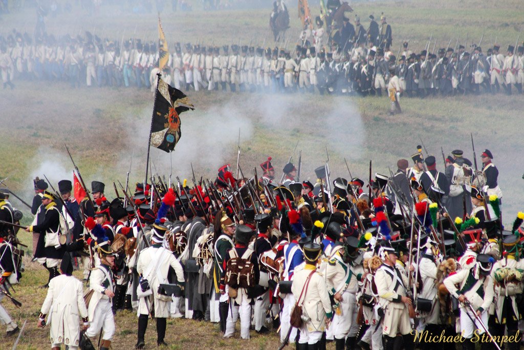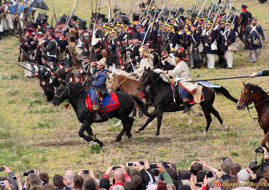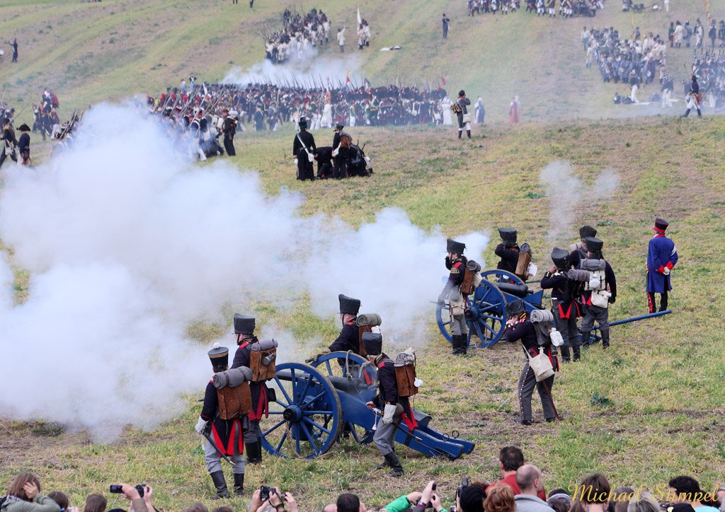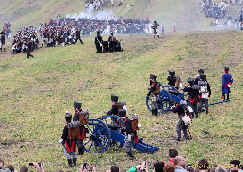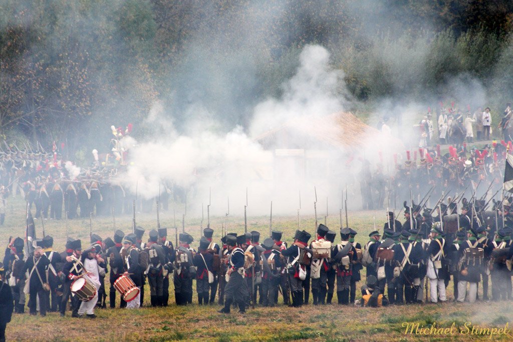 Die meisten „Freizeitsoldaten“ hatten in Biwaks campiert, wo sie zum Teil ihre Speisen am offenen Feuer zubereiteten. In langen Kolonnen waren sie zum Gefechtsfeld marschiert, auch Kanonen wurden in die Weinteichsenke geschleppt. Auf etwa 250 Pferden galoppierten Kavalleristen über das Feld.