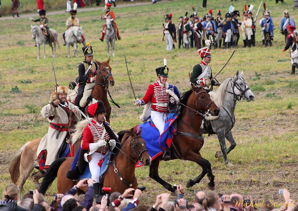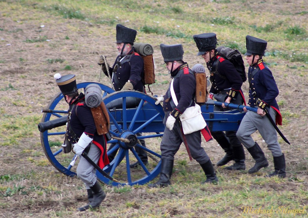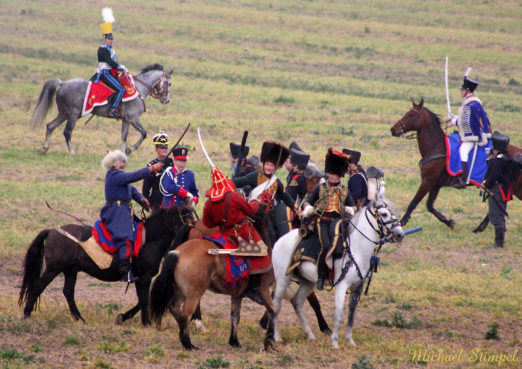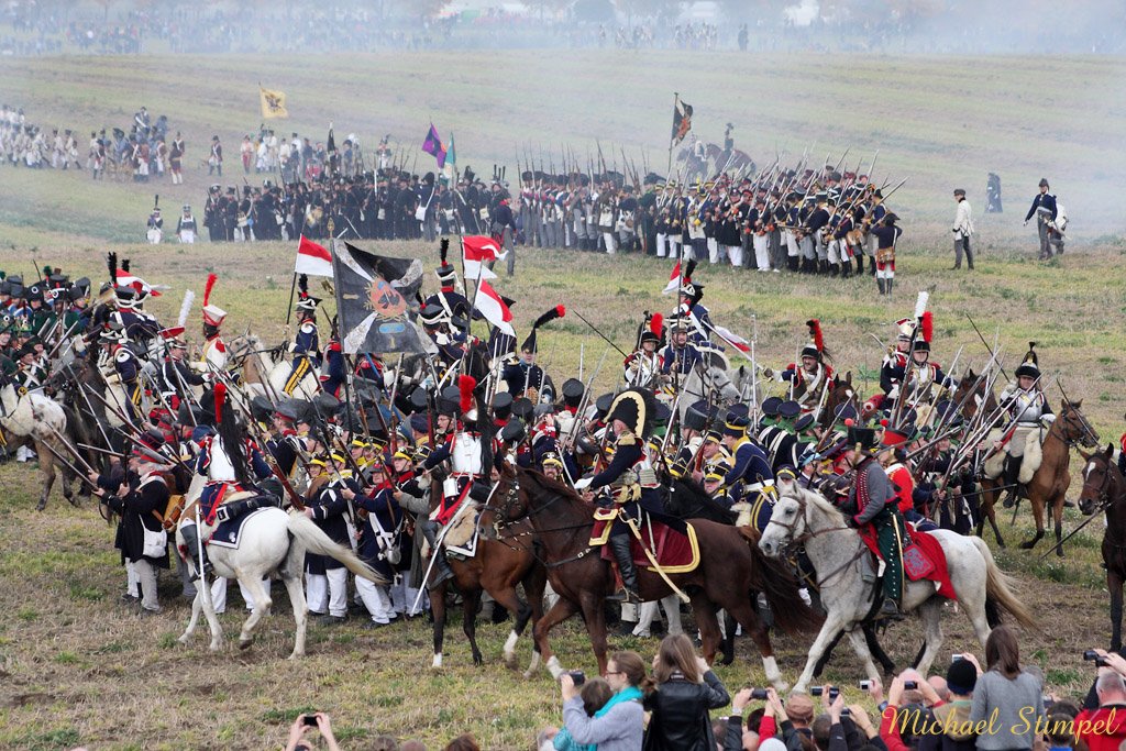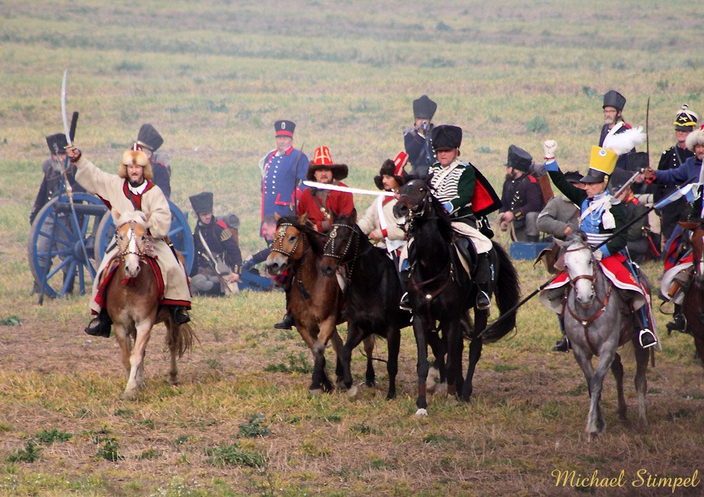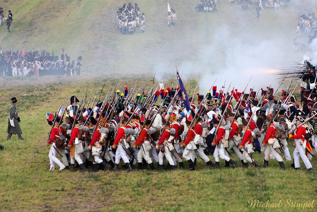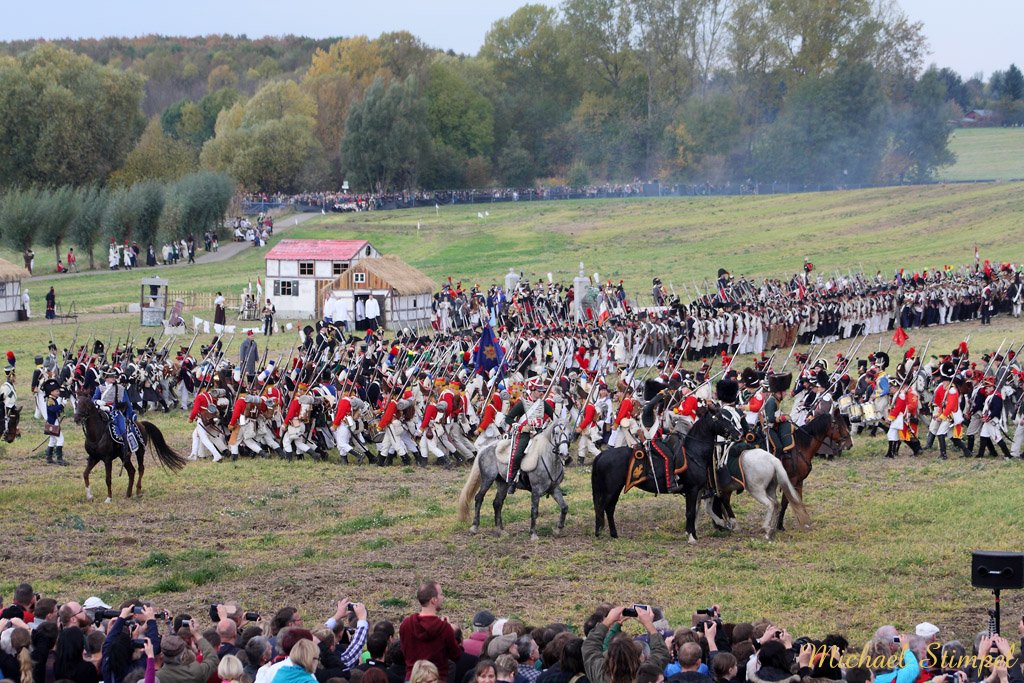 Die meisten „Freizeitsoldaten“ hatten in Biwaks campiert, wo sie zum Teil ihre Speisen am offenen Feuer zubereiteten. In langen Kolonnen waren sie zum Gefechtsfeld marschiert, auch Kanonen wurden in die Weinteichsenke geschleppt. Auf etwa 250 Pferden galoppierten Kavalleristen über das Feld.