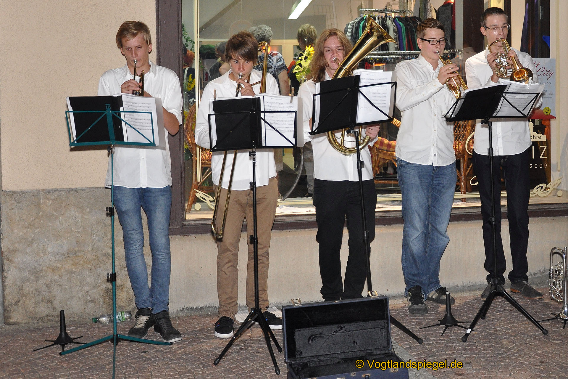 Die Frauen-Einkaufsnacht »Sekt in the city« wurde wieder sehr gut angenommen. Die Blechbläser der Greizer Musikschule.