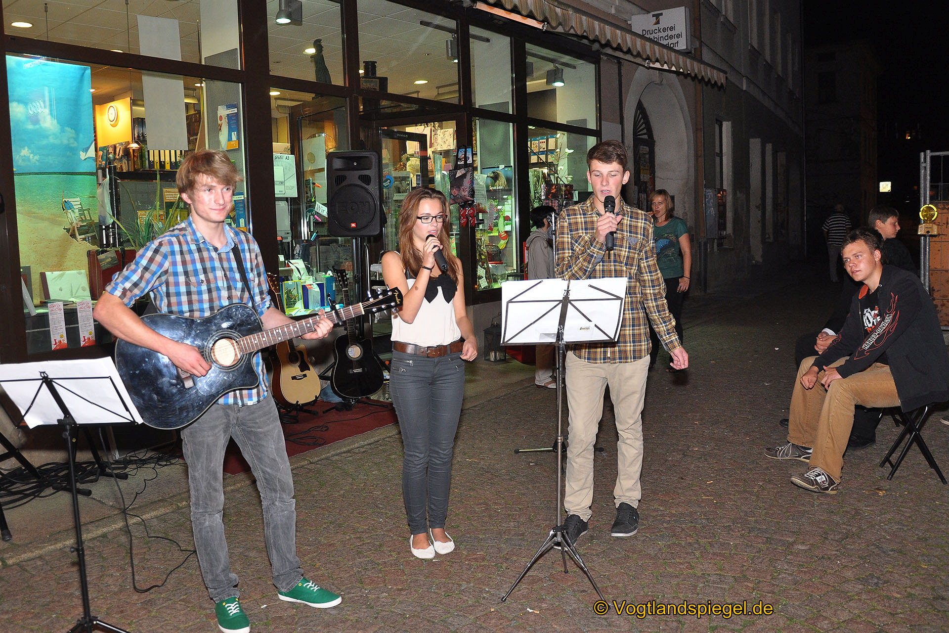 Die Frauen-Einkaufsnacht »Sekt in the city« wurde wieder sehr gut angenommen. Noc eine Schülerband, die in der Marktstraße unterhielt.