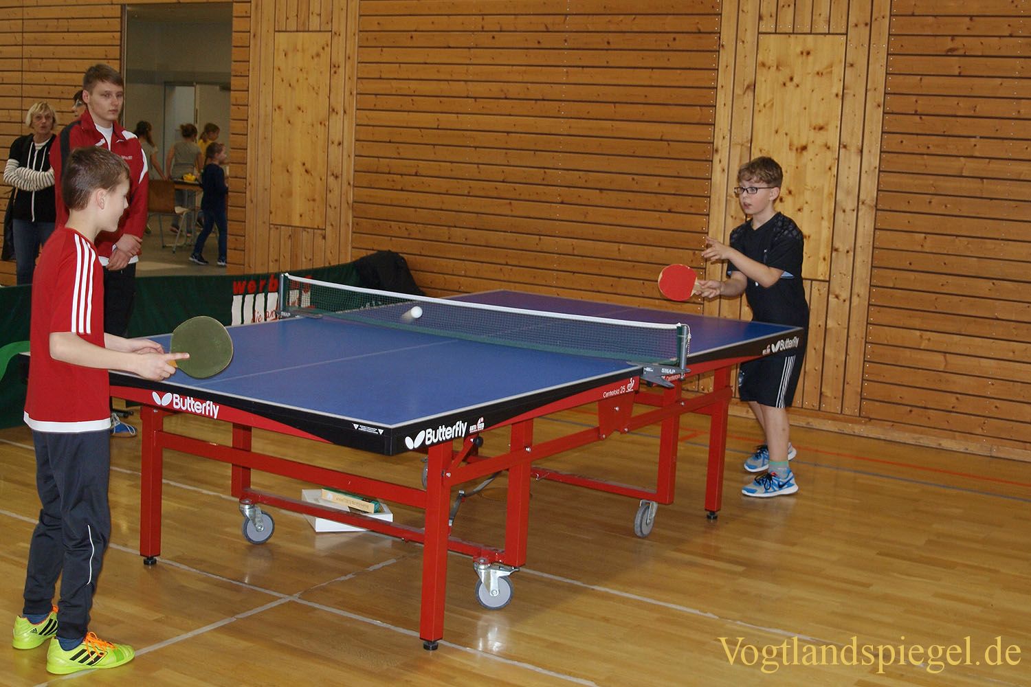 Auch die Jungen nehmen die Tischtennisplatte in Beschlag.