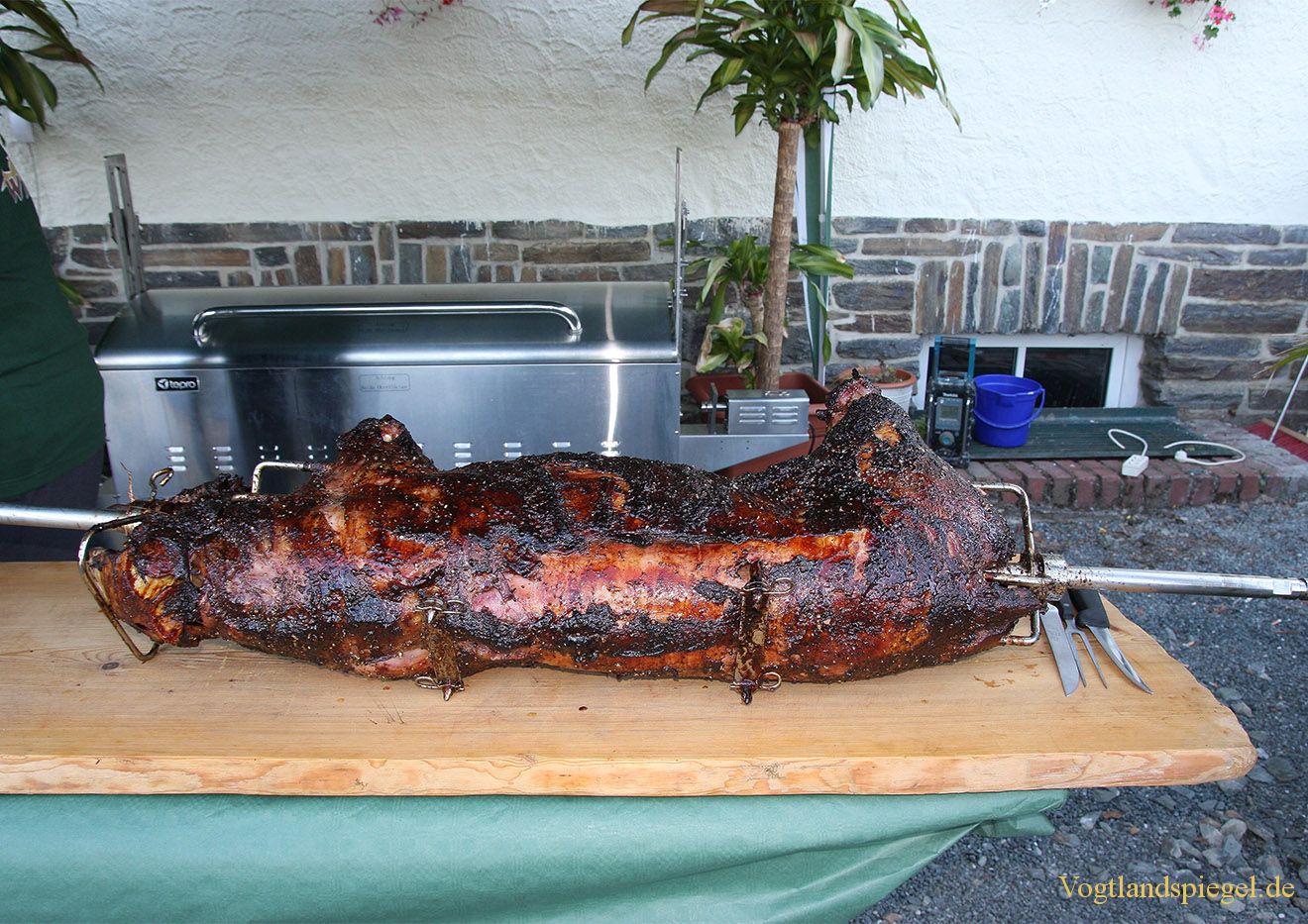 Seit Mittag wurde das Wildschwein im Grill zubereitet.