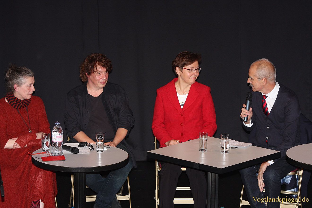 Sergej Lochthofen (r.) im Gespräch mit Thüringens Finanzministerin Heike Taubert.