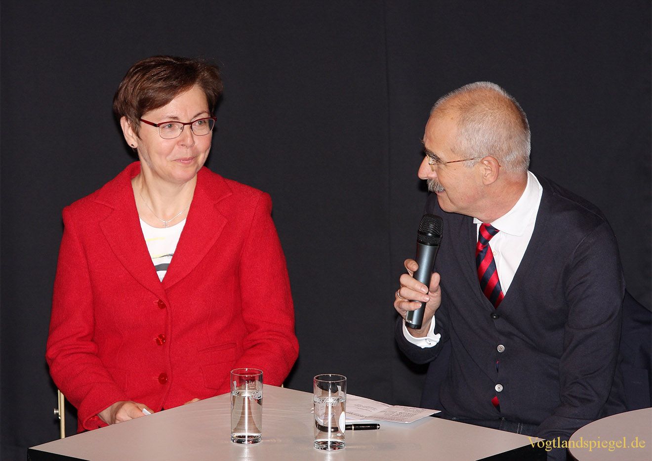 Sergej Lochthofen im Gespräch mit Thüringens Finanzministerin Heike Taubert.