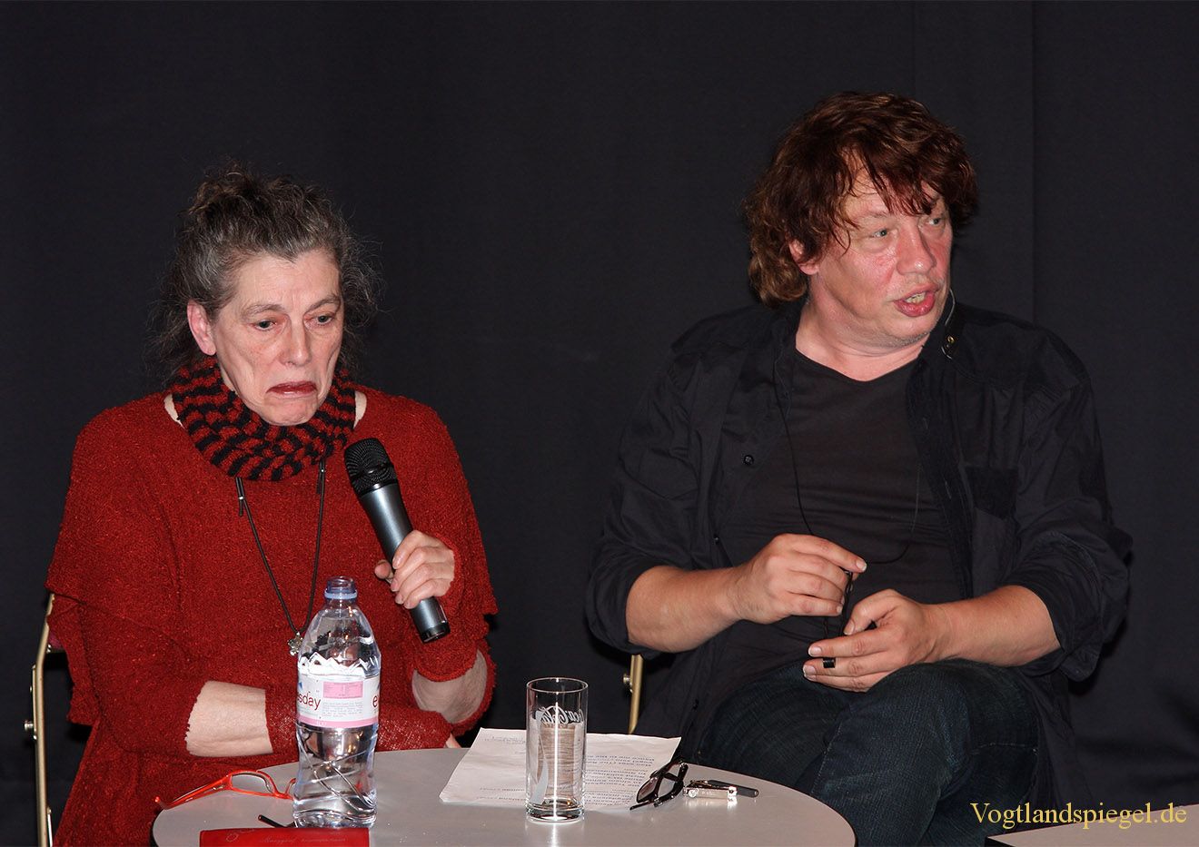 Bettina Wegner und Karsten Troyke bei der Diskussion.