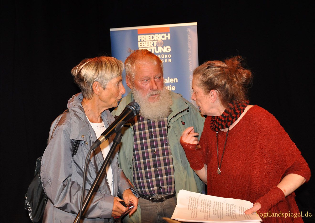 Harald Seidel und Frau Roswitha im Gespräch mit Bettina Wegner (r.)