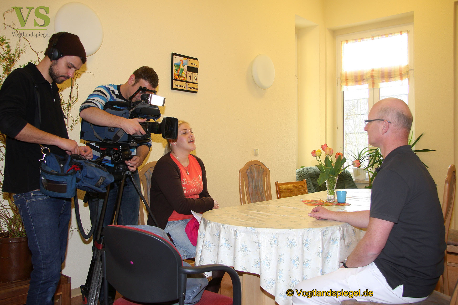 Dr. Olaf Geidel (r.) beim Interview mit dem Fernsehteam des MDR, das in der Demenz-WG in der Villa Ginkgo drehte