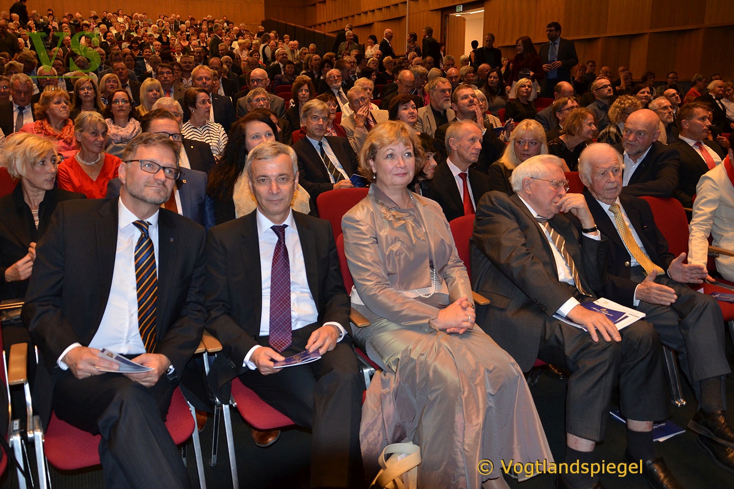 Reichenbachs Oberbürgermeister Raphael Kürzinger (l.), daneben Landrat Rolf Keil und Landrätin Martina Schweinsburg.