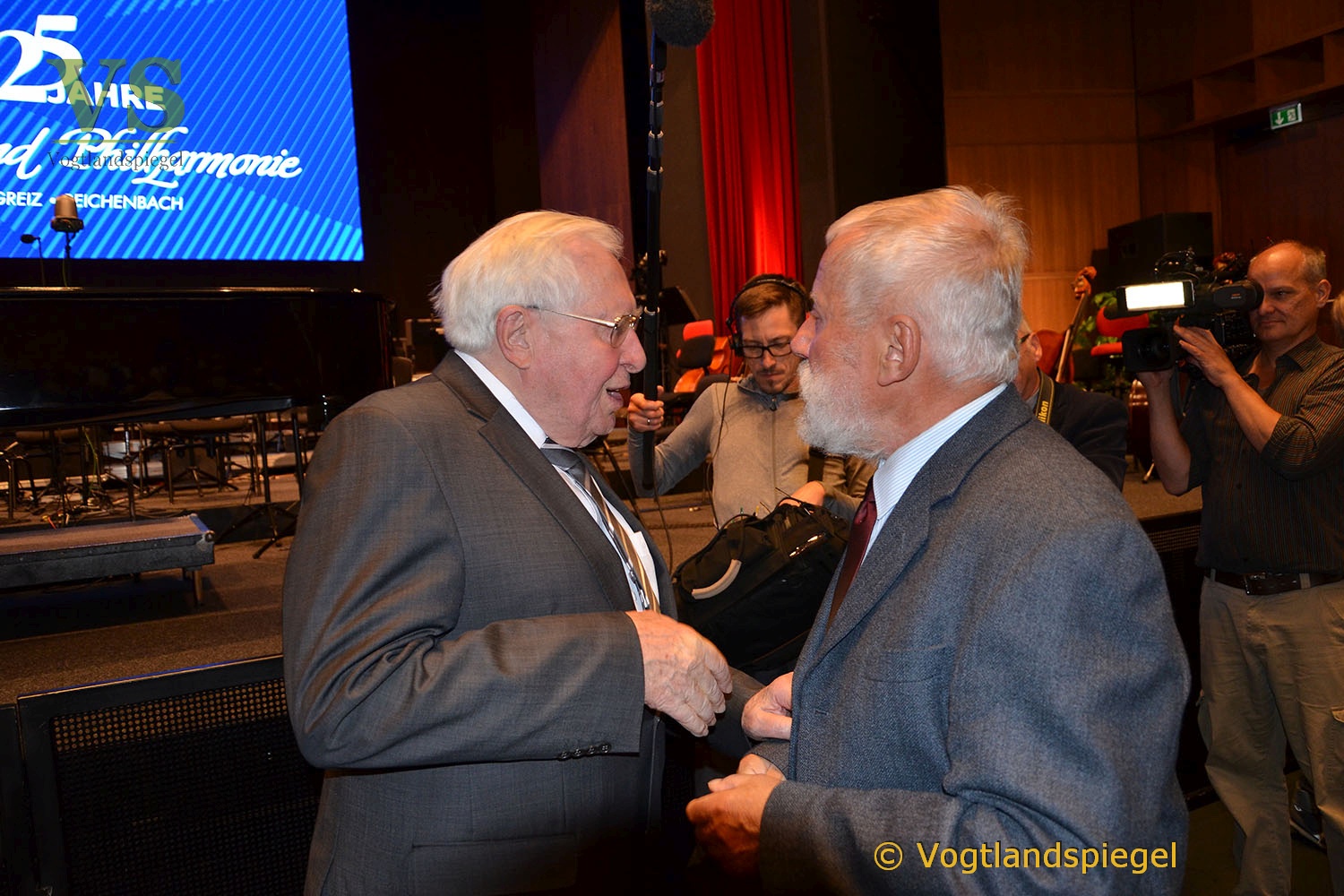 Kurt Biedenkopf (l.) im Gespräch mit Harald Seidel.