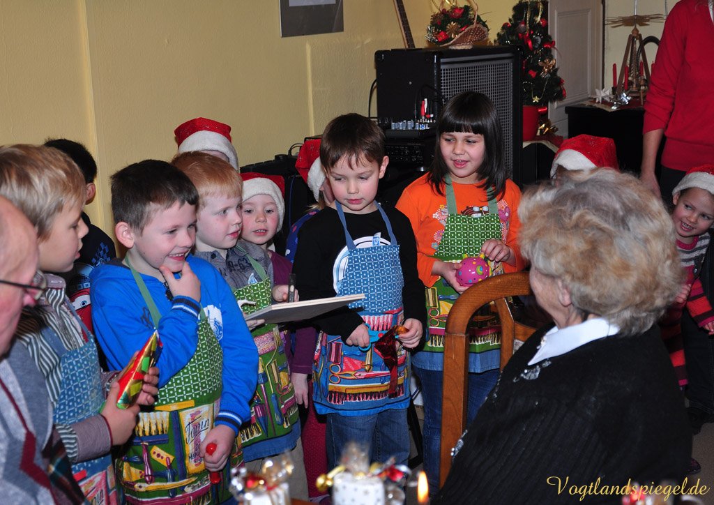 Etwa 50 Gäste folgten der Einladung der Volkssolidarität Greiz ins Nachbarschaftshaus zur Weihnachtsfeier für Alleinstehende. Auch Gedichte wurden von den Kindern vorgetragen.