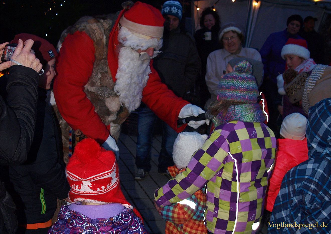 TT-Freunde Greiz e.V. und Ortschaftsrat Dölau/Sachswitz/Rothental stellten heimeligen sowie gemütlichen Weihnachtsmarkt auf die Beine Der Weihnachtsmann stattete dem Dölauer Markt einen Besuch ab. Foto: Peter ReichardtGREIZ-DÖLAU. Klein, aber ganz oho und heimelig war er, der 4. Dölauer Weihnachtsmarkt am Bürgerzentrum des Greizer Ortsteils Dölau/Sachswitz/Rothental am vergangenen Wochenende. Davon kündete nicht nur der große Schwibbbogen am Eingang, sondern auch die ganze Atmosphäre auf dem Platz vor der ehemaligen Dölauer Schule. Da roch es nach gebrannten Mandeln und Glühwein, Kräppelchen und heißen Waffeln, auch Stollen und Weihnachtsplätzchen. Ja, selbst der Duft vom Grill mit seinen Spezialitäten fehlte nicht und ließ bei vielen Besuchern das Wasser im Mund zusammen laufen. Liebevoll hatten die TT-Freunde Greiz e.V. ihre Eisenbahn-Modellanlagen im Bürgerzentrum aufgebaut und eine kleine, tolle Ausstellung zusammen gestellt. War es im vergangenen Jahr die Garteneisenbahn (sie fuhr mit viel Getöse und unter Dampf um den geschmückten Weihnachtsbaum), so war es in diesem Jahr die große Lego-Eisenbahnanlage, die die Augen der Kinder, aber auch die manches Erwachsenen leuchten ließ. Wer noch ein weihnachtliches Licht, Schneesterne oder einen Weihnachtsengel basteln wollte, und das waren eine ganze Menge Klein wie Groß, der war an der Bastelstraße der Greizer Tagesgruppe sowie der Elsterberger Kreativwerkstatt an der richtigen Adresse. Es war schon interessant zu sehen, mit welcher Konzentration sowie Kreativität da mit Leim, buntem Papier, Nadel und Faden, ja selbst mit Wolle sowie Filz umgegangen wurde und dabei kleine Kunstwerke entstanden. Heimisches Brauchtum sowie vogtländische Sitten und Gebräuche, davon zeugte der 4. Dölauer Weihnachtsmarkt sowohl im, als auch am Bürgerzentrum des Greizer Südens. Waren es doch die TT-Freunde Greiz e.V. und der Ortschaftsrat Dölau/Sachswitz/Rothental, die diesen Weihnachtsmarkt organisiert und auf die Beine gestellt haben sowie einige Gewerbetreibende aus dem Greizer Ortsteil, die mit ihren Angeboten diese heimelige und gemütliche Atmosphäre, die von vielen Besuchern so geschätzt wurde schufen. Da war es der Blumenhändler aus Sachswitz, der mit seinen Grüngestecken, Pflanzenarrangements sowie vielen bunten weihnachtlichen Dekorationen manch Herz höher schlagen ließ und zum Kauf anregte. Natürlich konnte man auch noch einen frisch geschlagenen Weihnachtsbaum aus den heimischen Wäldern des Greizer Oberlandes erstehen. Wunderschöne Mineralien konnte man bestaunen, wobei die Bergkristalle, die Pyritte, Malachit und Opal besonders ins Auge stachen. Für den Gaumen war es der Naitschauer Eierlikör und die verschiedenen Süßigkeiten sowie das Naschwerk, das manch Augen begehrlich leuchten ließen. Bastelartikel, Schals, Mützen und Taschen, diese teilweise in eigener Handarbeit entstanden, sowie wunderschöne 3 D-Glückwunschkarten, natürlich auch handgearbeitet und für viele Anlässe geeignet waren im Angebot. Und die Buchauswahl eines Triebeser Buchhändlers ließ Erinnerungen an die eigene Kindheit aufkommen. Ja, selbst für „Schönheit von Frau und Mann“ mit handgemachter Biokosmetik sorgte die schweizerische Manufaktur „Cremwolkenduft“, die durch ein junges Unternehmen aus Sachswitz vertreten wurde. Auch war für das leibliche Wohl aller durch die Veranstalter bestens gesorgt, so dass rundum zufriedene Gesichter vorherrschten. Und das galt besonders für die Kinder. Hatte doch der Weihnachtsmann an beiden Tagen sein Kommen zugesagt, hielt eine Weihnachtsmann-Sprechstunde ab und nahm so manchen der Kleinen ins Gebet. Doch die Rute musste er nicht hervor holen. Vielmehr hatte er für alle Kinder eine kleine weihnachtliche Überraschung parat, die er mit seinen ihn begleitenden Wichtel unter den Kindern verteilte. Ein heimeliger kleiner Weihnachtsmarkt im Greizer Süden, der auch in diesem Jahr den Reigen der Weihnachtsmärkte im Stadtgebiet Greiz abschloss. Ein gemütlicher und urbaner Weihnachtsmarkt, der 4. Dölauer Weihnachtsmarkt, der heimatliches Brauchtum pflegte und von den Besuchern mit einem regen Zulauf belohnt wurde. Ein Wunsch, den man immer wieder hörte! Er möge auch im kommenden Jahr wieder im Veranstaltungsplan des Greizer Ortsteiles Dölau/Sachswitz/Rothental stehen. Man kann wohl ohne Umschweife sagen: „Eine Tradition entwickelt sich.“ Peter Reichardt @21.12.2014