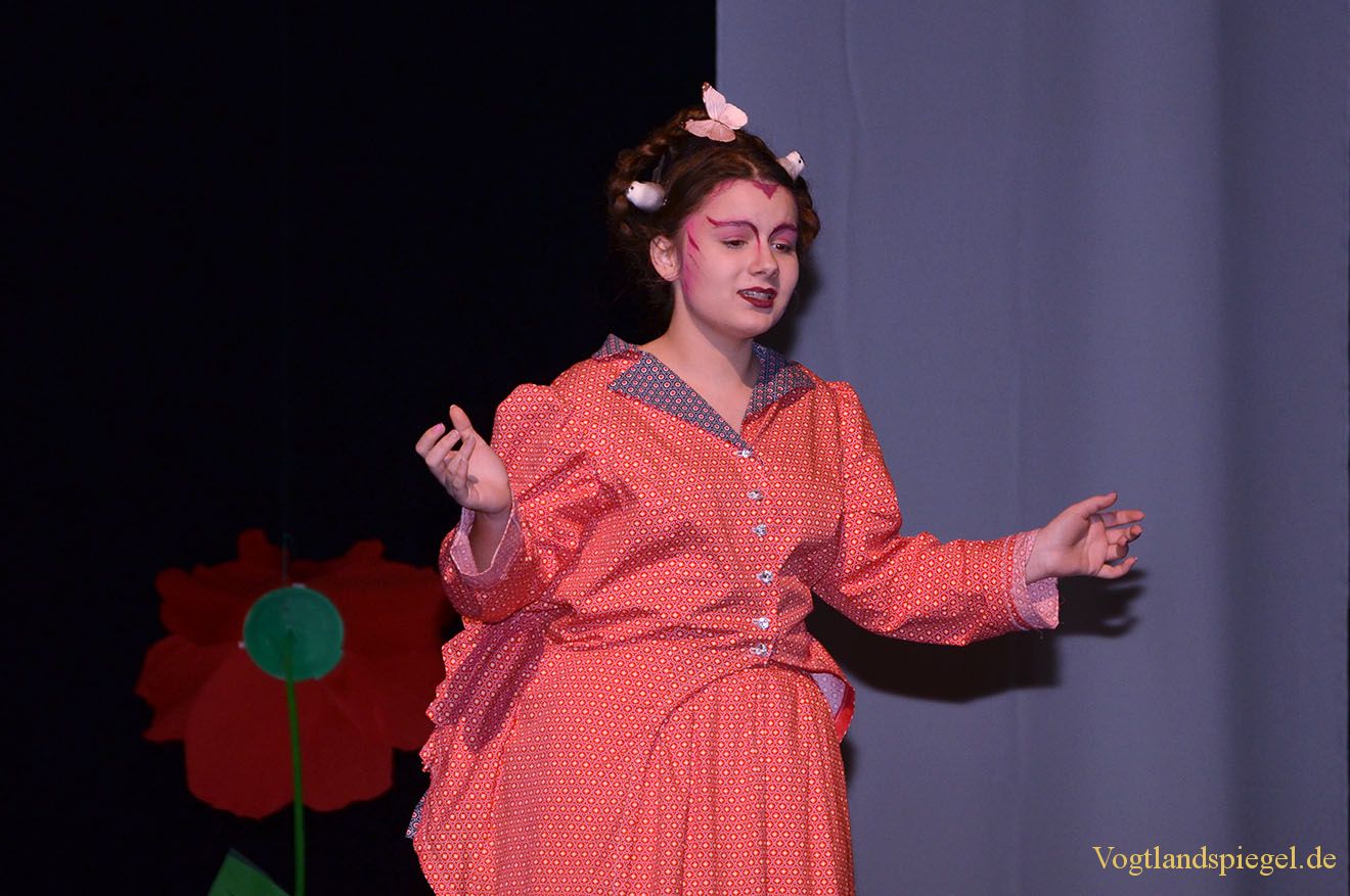 Szene aus dem Weihnachtsmärchen „Der Zauberer von Oz“, das das Spontantheater Hartmann und die Tanzklassen der Kreismusikschule gemeinsam auf die Bühne der Vogtlandhalle Greiz brachten.