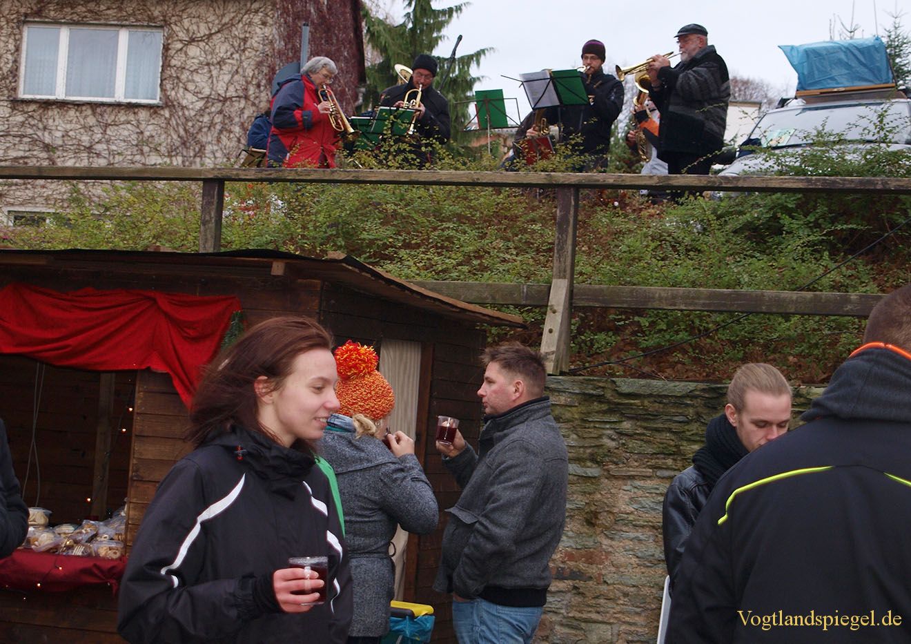 Der Posaunenchor spielte zum Waltersdorfer Weihnachtsmarkt weihnachtliche Weisen.