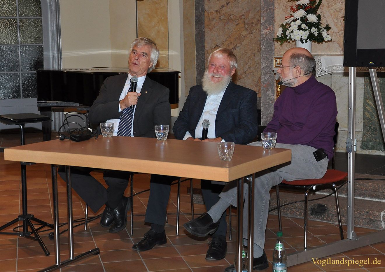 v.l. Ulf Merbold, Harald Seidel und Harald Lesch zur Diskussion.