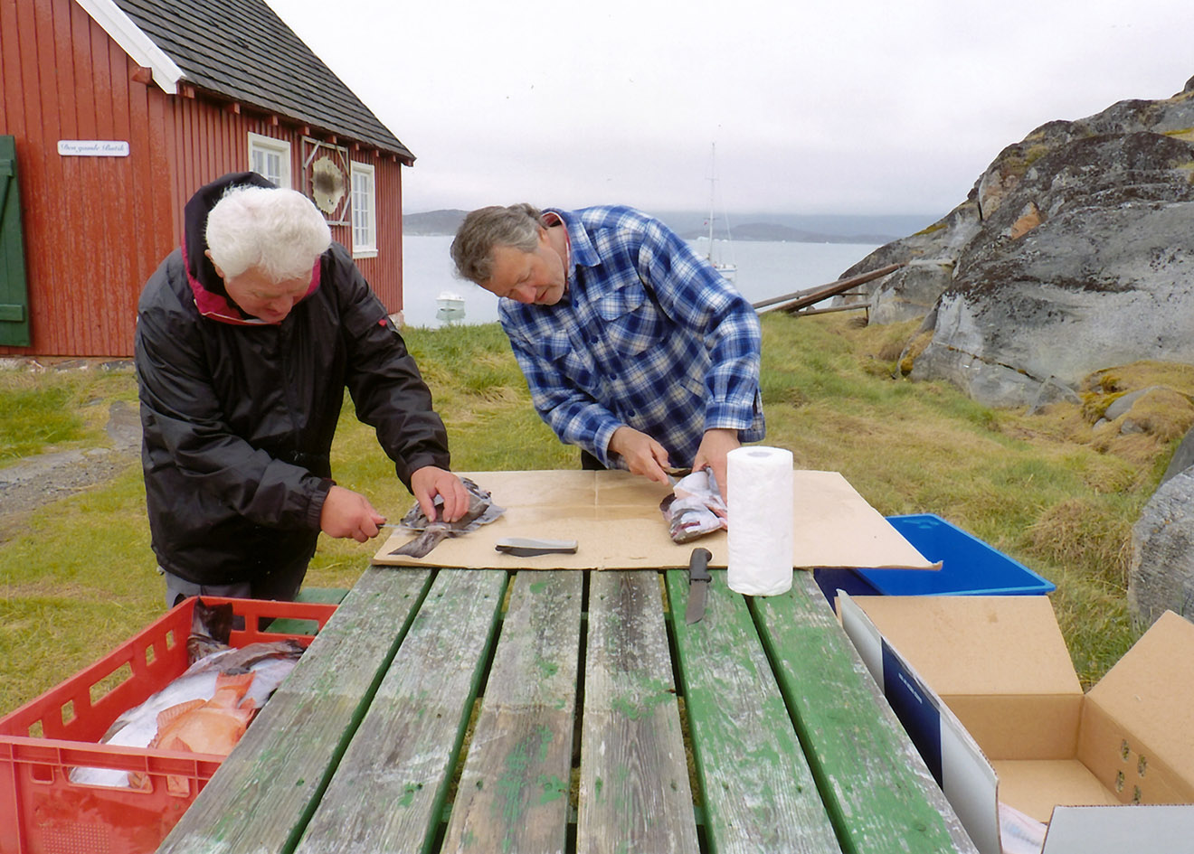 Ingo Wolff (r.) zeigt dem Mohlsdorfer Frieder Pampel, wie man Fische filetiert.
