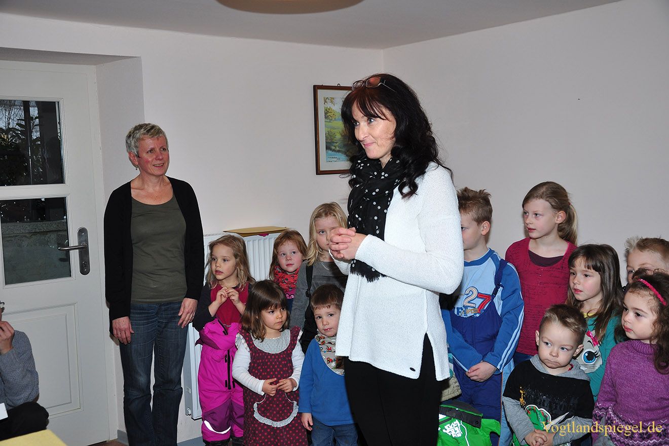 Die Leiterin des Kinderhauses Am Elsterufer, Anja Grotzke, spricht ihre herzliche Gratulation aus.