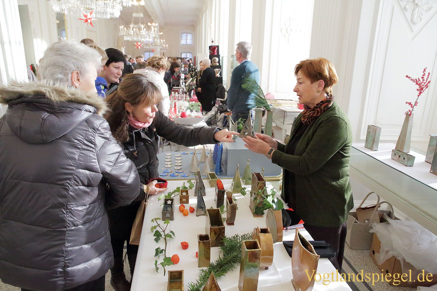 Keramikerin Angelika Kühn von Hintzenstern (r.) berät Interessierte.