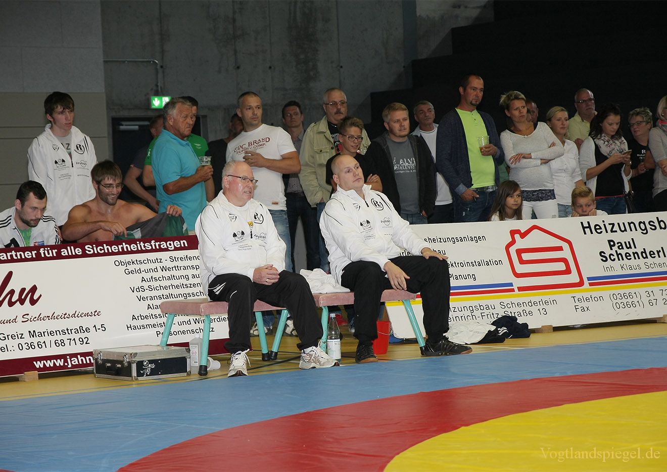 Trainer Hans-Peter Zipfel und Trainer Sasch Förster am Mattenrand
