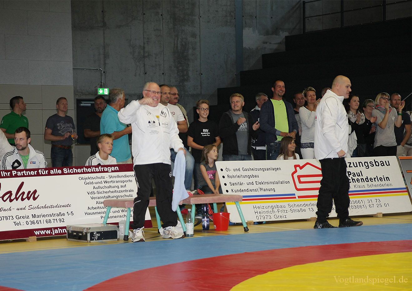 Trainer Hans-Peter Zipfel und Trainer Sasch Förster am Mattenrand